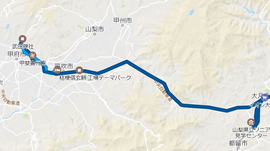 桔梗信玄餅工場11:16〜12:00 工場〜リニア見学センター33Km