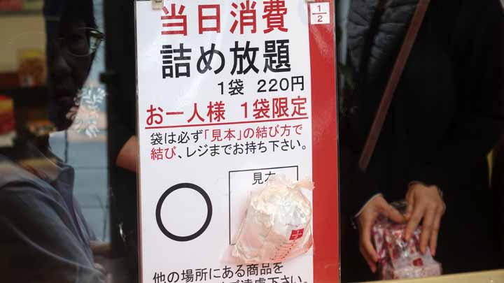 11時過ぎになったので著名な「桔梗信玄餅工場テーマパーク」に出かけた。ここの工場見学をするのがメインだが、昨日泊まったホテル「石庭」のスタッフから「220円詰め放題」の話を聞いてがぜん行く気になった。1個150円もする桔梗信玄餅が20個近く詰めて僅か220円と吃驚仰天の大サービス。残念ながらdachs飼主の10人前で桔梗信玄餅は終了となり1個200円の饅頭を各13個詰めて440円で我慢せざるを得なかった。残念。