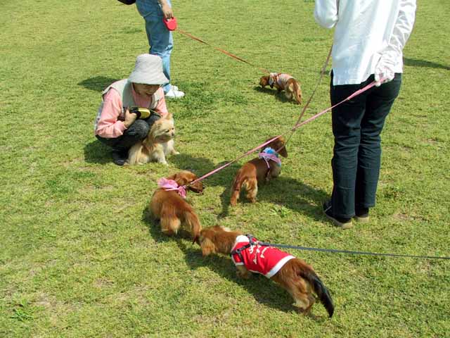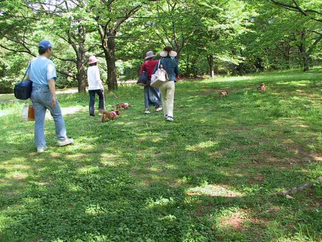 2004年5月1日(土)早朝ラミエル・ウリエル親子とDachs飼主はかねてより再会の約束をしたいたサリー・カブ姉弟と東京立川市の国営昭和記念公園に向かった。国立公園だが、隣のクニタチと間違われない為か、国営と何ともイカメシイ名前だ。
