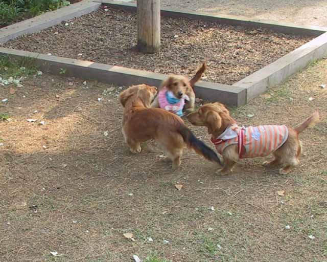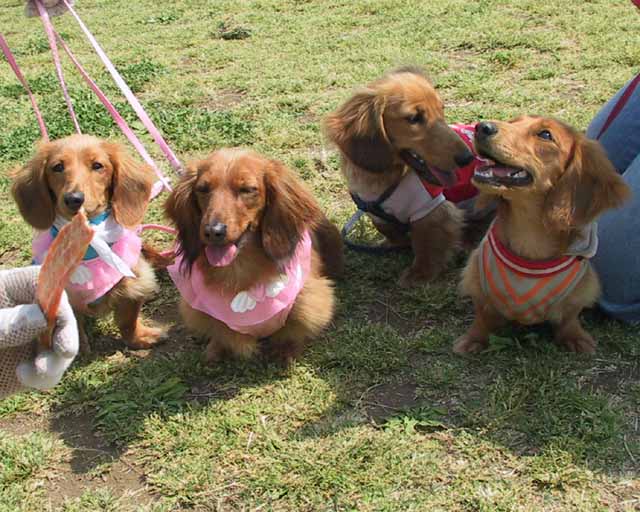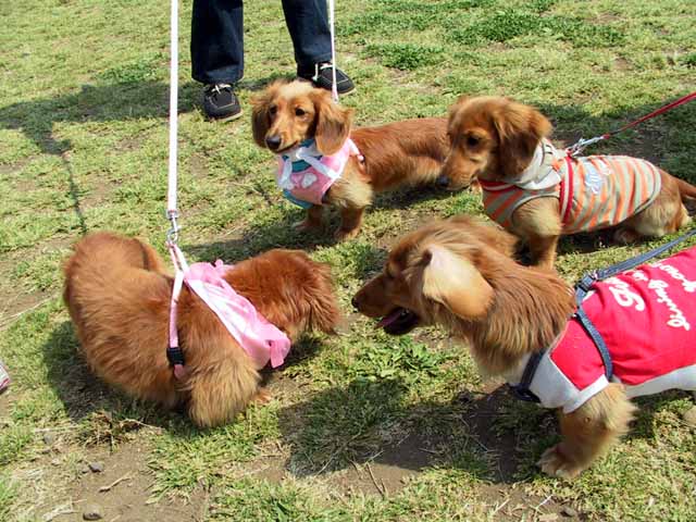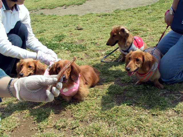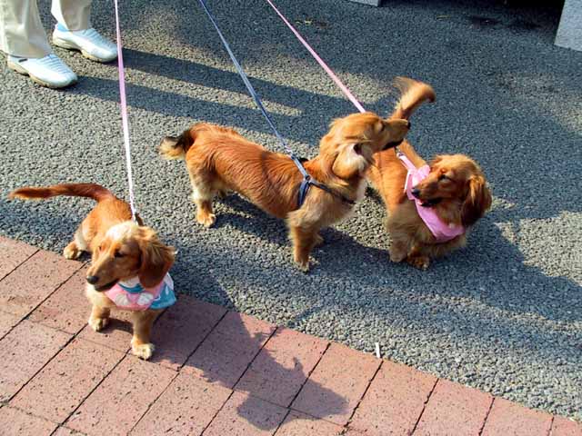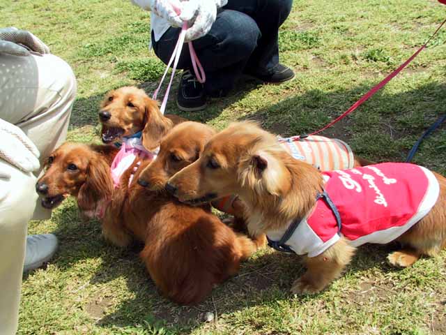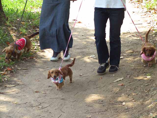約4時間にわたり、喋ったり食べたりしながら歩き回ったが、4匹のダックス集団はとても周りの眼を惹いたうようで、『可愛いわ・親子なの・似てわね』などなどの賞賛のアラシでDachs飼主としては何となく嬉しかった。