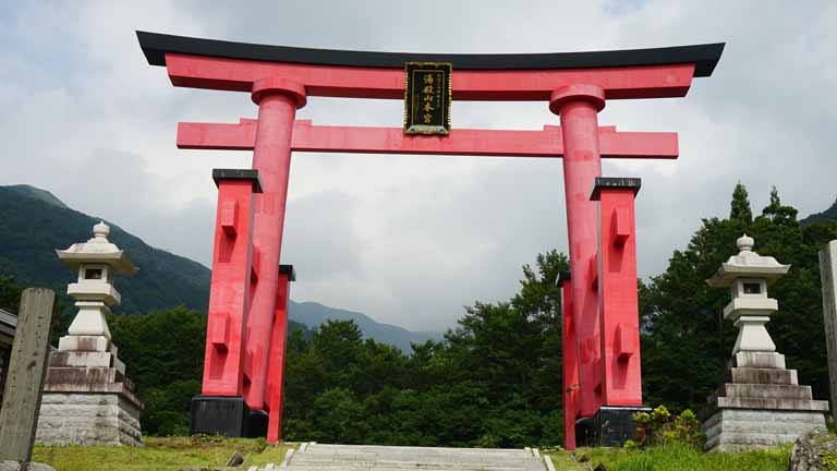 バスは80分かけて、東北中央道経由で、山形県南陽市にある熊野大社にむかう。10時40分には栗平トンネルを越えて山形県米沢市に入った。11時40分に大社到着。