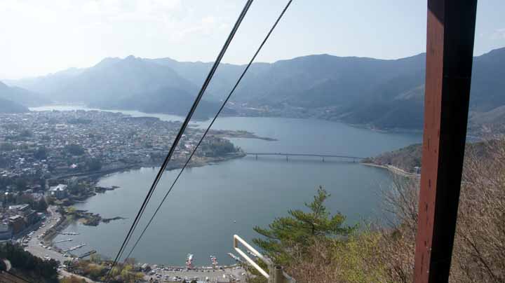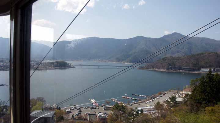 河口湖の全景を上からしっかり見たいと思い、14:30、天井山カチカチ山ロープウェイに行く。3分ほどの短い搭乗だったが、方向は違うが、富士山と河口湖を一望できた。