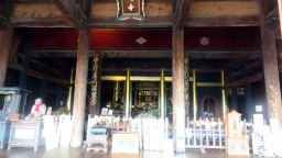 次に向かったのは甲斐善光寺。本堂の啼き龍で指定された位置で柏手を強く打つと天井の龍が啼いたような声で反響する。まるで龍が啼いているような共鳴であった。