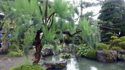 まずは武田神社。躑躅崎で有名な武田氏邸があった場所近くにできた由緒ある神社でだ。水琴窟、能舞台などを観て廻ったが、鬱蒼とした林が印象的だった。モミジも綺麗だった。