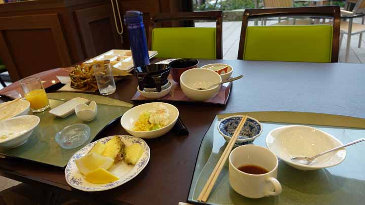 今日も良いお天気。起床後早めに朝食を取った。バラエティのあるビュッフェ形式だったが、とても旨かった。食後はホテルで用意してくれた湯駕籠にタオルを入れて、湯足袋を履いて旅館から直ぐ近くの共同浴場「道後温泉本館」に行ってきた。泉質は同じ道後なのだが、やはり著名な日帰り銭湯なので魅力がある。今回は「神の湯」と「霊の湯」への入浴と、皇室専用の浴殿「又新殿」及び漱石の愛した「坊ちゃんの間」の見学もできた。もう一つ近くに共同浴場「椿の湯」もあるのだが、道後の湯はすべて同じ泉質の単純泉なので今回も行かなかった。