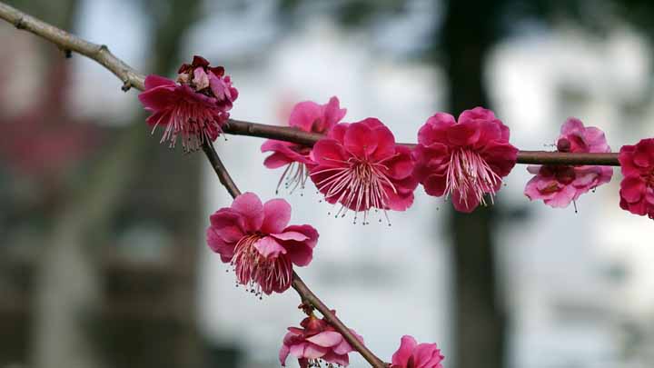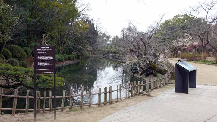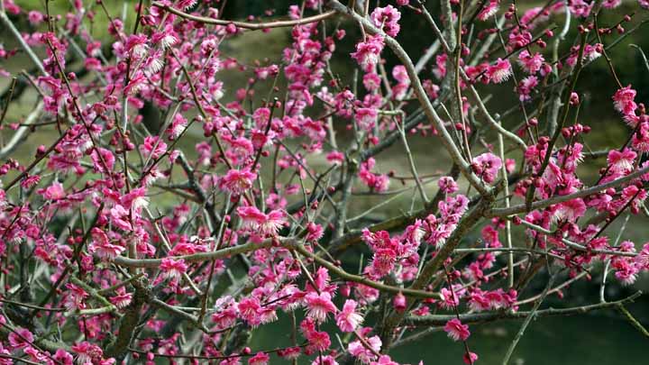 お風呂上がりには紅梅・白梅が散り際の道後公園を歩いた。展望台からは遠く石鎚山らしき山々も見渡せた。