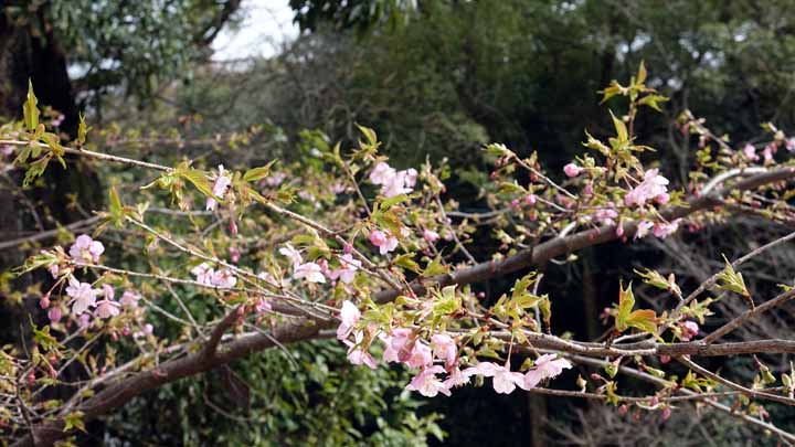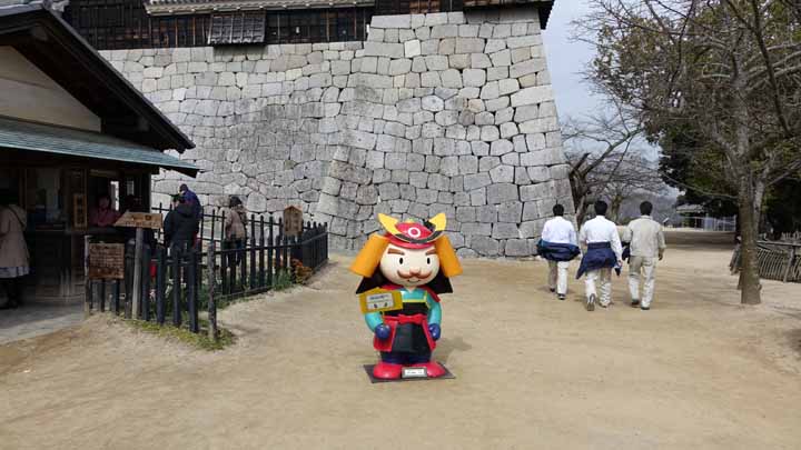 ホテルに戻ってわが手荷物を持って、市電で勝山町交差点近くの今夜宿泊の「東横イン松山一番町」に正午過ぎに入り、荷物を預け、松山城に向かった。松山城へはロープウェイで行ったのだが僅か2分の乗車で一度来た人は歩く人が多いという。午後になって曇りがちとなり、残念ながら、松山城に上がっても遠くは望めなかった。加藤ヨシアキ公で有名な松山城は工事中の城郭や門も多かったが、それなりに勇壮で立派だった。早生の河津さくらがきれいに咲いていた。