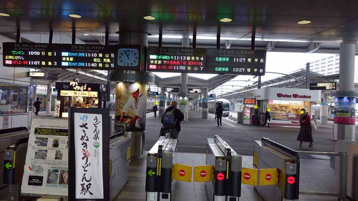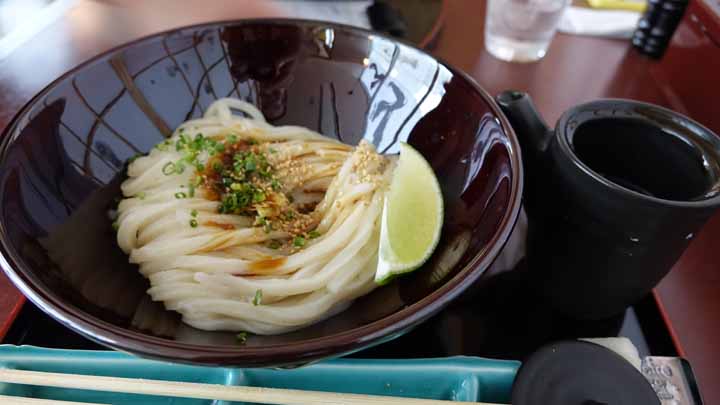 朝から雨。予報では高松や小豆島も終日雨らしい。傘を差しながらスーツケースを引きづりながら肩にはリュックを背負ってホテルに近い大街道バス停に向かった。08:04発「坊ちゃんエクスプレス(高速リムジンバス)」に乗車し、松山から高松駅まで高速道路を約2時間半でひた走る。予定到着時刻は10:28でちょっとせからしいが10:40発のフェリーに乗ろうと思っていた。ところが、雨の所為か15分ほど遅れてフェリーの出発時間には間に合わなかった。この後は11時35分まで小豆島行は来ない。やむなくフェリーターミナルへの途次、讃岐饂飩の店で「生醤油うどん」を食べてちょっと早い昼食とした。大根おろしとゆず、生醤油の味で冷やし饂飩が美味しい。