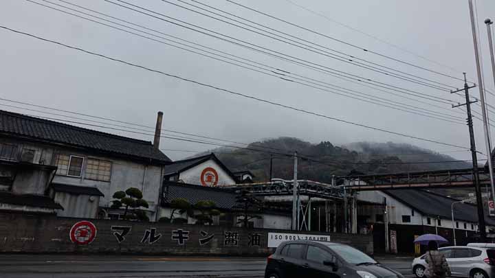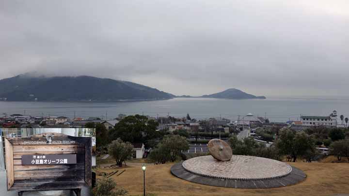 雨なので、「中山の千枚田」はパスして、次に行ったのは寒霞渓。秋はモミジの渓谷がとても美しく見えるとのことで楽しみにしていたが、ロープウェイ入口、標高は300メートル近いところで深い霧か靄がかかって、職員に頂上の様子を聞いてもらうとかなり視界が悪いとのこと。モミジの季節11月は2時間半以上の待ちはザラにあるほどの抜群の景色らしいのだが今日は5m先も見えない。小豆島までロープウェイから寒霞渓を見たかったのに誠に残念だった。あとはマルキン醤油記念館、二十四の瞳映画村を見てホテルに戻って来たのは午後5時。2か所では、昭和ロマンあふれるホーロー看板や広告、懐かしの家具や玩具などを見ることができた。帰る途中、道の駅「オリーブ公園」があったので寄ってみると、5時でクローズ、今午後4時58分で諦めた。代わりに海の景色がここから一望できた。いろいろ残念な暗い海だった・・・。