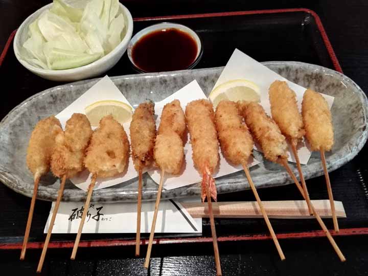 お昼はサンチカタウン「破り子」で大阪名物の串カツを食す。