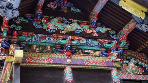 12時20分にバスは出発して秩父神社に向う。以前秩父夜祭の時に訪れたが本殿付近はごった返していて良く見れなかったが元気なお猿さんなどの本殿周囲の彫刻をゆっくりと見させてもらった。「北辰の梟」「お元気三猿」「つなぎの龍」「子宝子育ての虎」は左甚五郎作か。