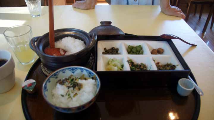 鬱蒼とした森の中を歩くのだが、まるでトトロの森ライクな古木と苔が道の両側を満たしウォーカーを飽きさせない。3時になって、池の傍にある「青苔荘」に入り、ざる蕎麦とアイス最中を食べてやっとおなかが一息ついた。
