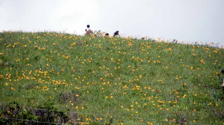 その後はニッコウキスゲが群生する富士見が原で10分ほど停車して黄色の瞭乱を見歩いた。富士見が原からの展望で、わずかに富士山山頂部のみが微かに見えた気がした。この時点で1時半を回っていたので、次の目的地に駆ける。ビーナスラインからメルヘン街道に向け、らせん坂の葛折をくねくねと上り下りする。結構な距離と時間をかけた。途中麦草峠では標高2700mを超える。車の冷房より外に出たほうが涼しい。