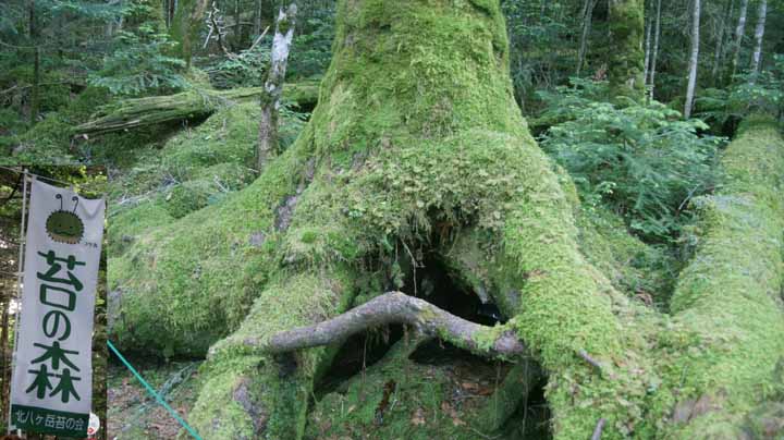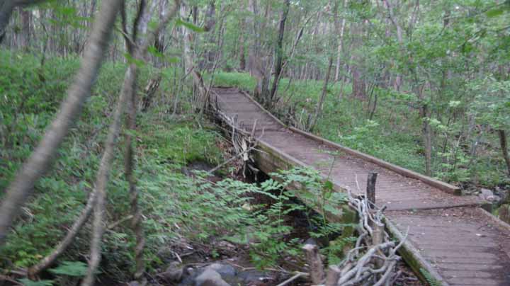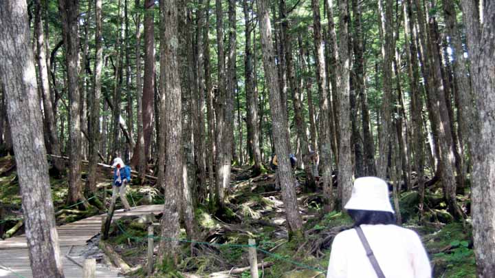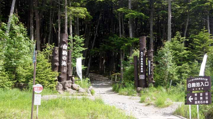 次の白駒池は昨夜の宿のスタッフが「近辺に池や湖はたくさんあるが、やはり一番はここだ」と強く奨めてくれた場所なので、ぜひとも行かずばなるまい。池自体は周囲1300mとそれほどでも無いが、見所は、駐車場から片道15分かけて池まで700mほどの往復にあった。