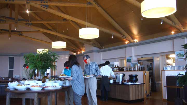 7時半にレストランに行くと、新鮮野菜と自然食品、自家製調味料を中心にした和洋食がきれいに並べられて、食欲をそそる。まず清泉寮牧場牛から絞り出したジャージー牛乳を飲む。昨日食べた寮名物ソフトクリームもおいしかったことも思い出す。