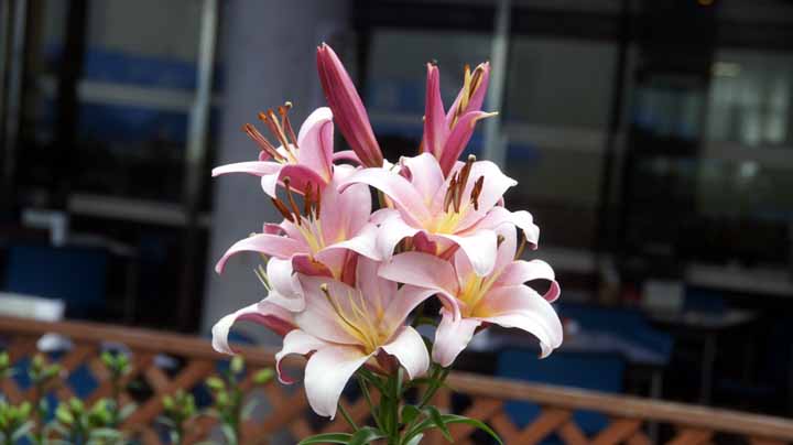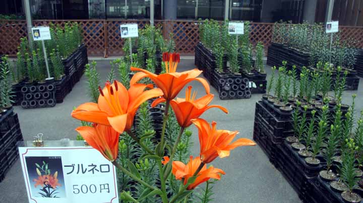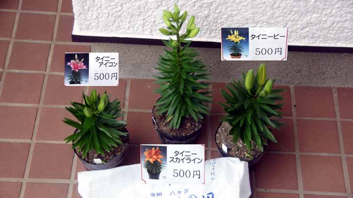 百合の花々があまりに鮮やかで綺麗だったので、背の低いすかし百合の色違いを3鉢買ってきて、トランクに収納。