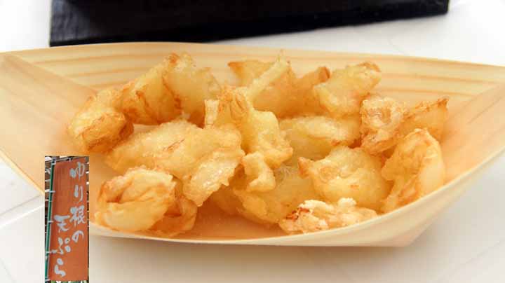 名物百合根の天婦羅 薄塩がふってあるが甘い |