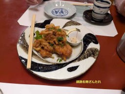 残念ながら下層に濃い雲が覆い、大きな太陽が落ちる風景は撮れなかった。17時20分に諦めて今夜の宿釧路プリンスホテルにチェックイン。ビジネスホテルなので、大浴場は無く内風呂だった。食事も一人3000円のクーポン券をもらって近くの居酒屋「駒形家」で刺し身、ザンギ、鰈の煮付け、突き出し等とビールで夫婦で美味しく頂いた。ザンギは釧路が発祥の地と言われ、ここではたれのかかったザンタレという料理をつまんだ。