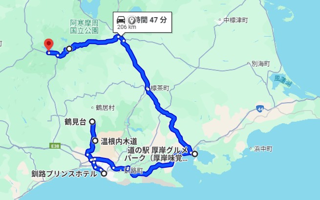 15時20分道の駅摩周公園でトイレ休憩。今夜の宿は阿寒湖の畔「ニュー阿寒ホテル」。8時に花火が上がるそうだ。阿寒湖は以前平成28年に行って冬花火を見た覚えがある。