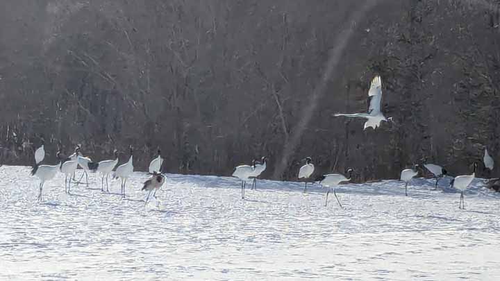 湿原から数分で鶴見台でタンチョウ観賞。1昨年3月に訪れた際は1匹も居なかったタンチョウが100匹以上集団で観れた。たんちょうづるというのは名称的には間違いだそうだ。ソフトクリームもミルクも濃くて美味かった。