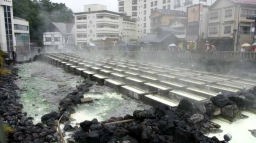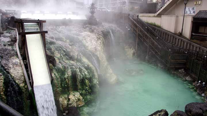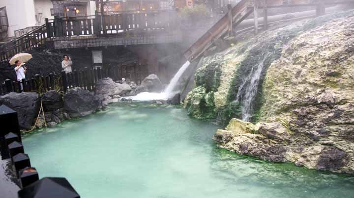 - 硫黄(硫化水素)泉。湧出量は自噴泉としては日本一、源泉の数は130箇所以上、独特な匂いを漂わせる強酸性の泉質は皮膚病や神経痛、胃腸病などに効く。