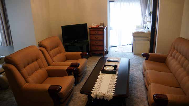 30分ほど散策し、ホテルに戻る。立派なホテルで、おまけにdachs飼主が予約したホテルは和洋室の特別室だった。部屋も15畳の和室・10畳のベッドルーム・12畳のリビング・6畳のキッチンなど広々として気持ちよい。大型の電動マッサージ機が備え付けてある以外に感心したのは内湯も温泉だったこと。過去内湯が露天風呂だったことはあるが温泉を引いてきているのははじめての経験。夕食はそれほど感激モノではなかったが、上州牛のすき鍋・刺身・天麩羅・岩魚の塩焼き・・・など一通りのご馳走はしてくれた。雨でなければ最高だったのですが・・・ 予報では明日も終日雨・雨・雨。