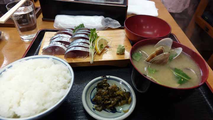 11時前からの食事は朝食抜きだったから、ブランチとなる。dachs飼主は『市場食堂』で首折れサバ定食を食べた。首折れサバは丁度12年前に屋久島エコツアーに行ったとき、食べそびれたサバ刺しである。やはり新鮮で美味かった。サバの刺身は新鮮でないと食べられない。あさり汁も圧巻であった。汁椀にもう一椀置いてあるのは食べた貝殻を入れるものだが、そこも山盛りになった。