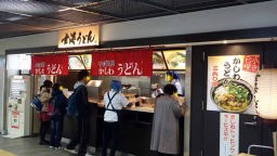 中州に着く前の祇園であの有名な饂飩舗《かろのうろん》を見つけてしまった。中州で夕食は中止する。うどん屋に入らずばなるまい。肉饂飩を頼むと茹で上がりに10分掛かるらしい。蕎麦だと4分弱でオッケーと言う。美味しそうな肉うどんに葱をたっぷり載せて、カメラで撮ろうとすると撮影禁止とか。2年前からおことわりしているらしい。店の女性には撮影禁止と宣告されがっかりしたが、商品の説明や応対は秀逸でとっても感じよかった。これから中洲の屋台村に行っても食べられないので今日の観光はこれで終了とする。駅前のふくこいショーは大勢の人に囲まれ、まだ演っていた。