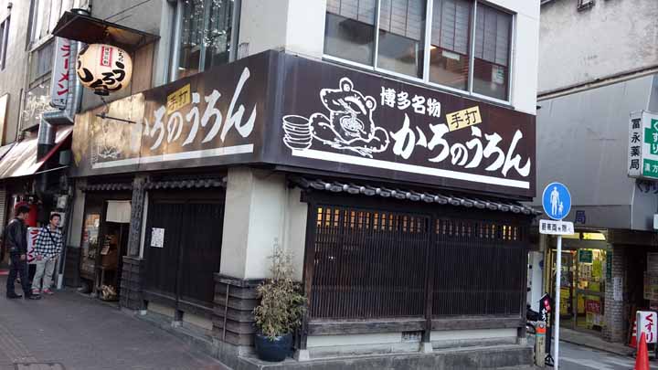 商人の街博多では時間にシビアな商人たちが素早く食べられるようにとゆで置きの柔らかい麺のうどんが主流になったといわれている。また、軽食として食べられていたため、消化の良い柔らかい麺が好まれたという説もある。江戸時代には「夜鳴きうどん」と呼ばれる屋台スタイルが主流であったが、明治時代に入ると多くのうどん店が登場する。中でももっとも老舗とされているのが博多区にある明治15年(1882年)創業の「かろのうろん」(「角のうどん」の意)である。