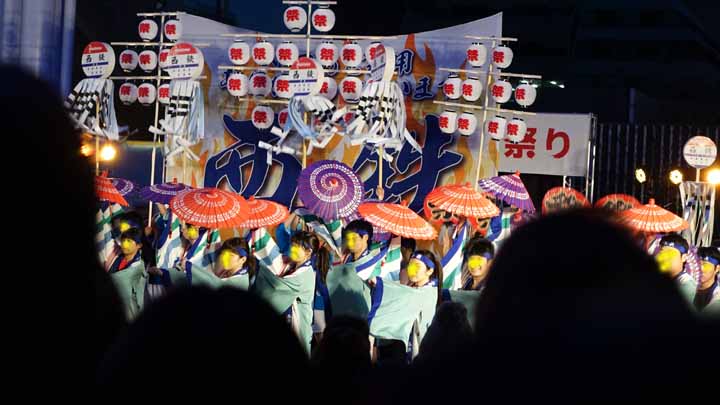 博多駅前では 福岡よさこい祭り開催中 |