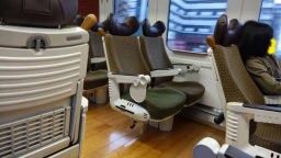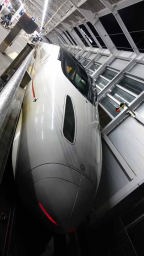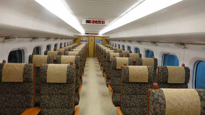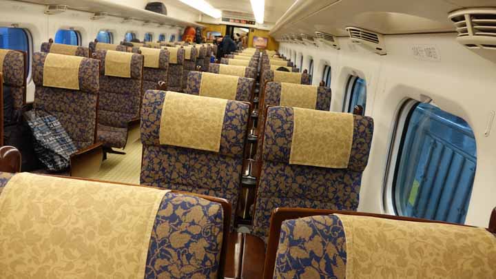 雨の中、午前6時9分発の 新幹線に乗車 |