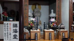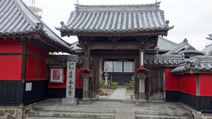 合元寺(ごうがんじ)は1587年(天正15)、黒田官兵衛孝高によって建立された。 深紅に塗られた壁は城下町・中津の中でもひときわ強烈な印象を与え、別名・赤壁寺とよばれている。黒田長政により、豊前の実力者だった宇都宮鎮房(しげふさ)が騙し討ちに遇い、この寺を宿舎にしていた家臣たちも全員討ち死。その時の血潮を浴びた門前の白壁は何度塗り替えても血痕が浮き出るため、ついに赤壁に塗り替えたといわれている。