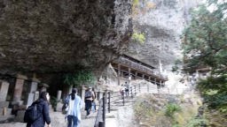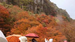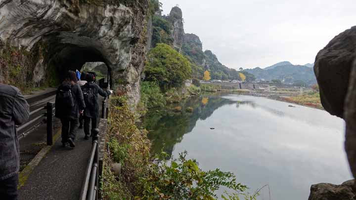2014年11月17日(月)は早朝からホテルを出て、雨の降る中、大分県中津を起点に青の洞門と耶馬溪観光に出た。