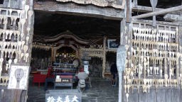 12時に洞門から程近い羅漢寺下の万千百園(まちおえん)でお昼ご飯を食べた。辛子椎茸が美味しかったのでお土産に買ってきた。