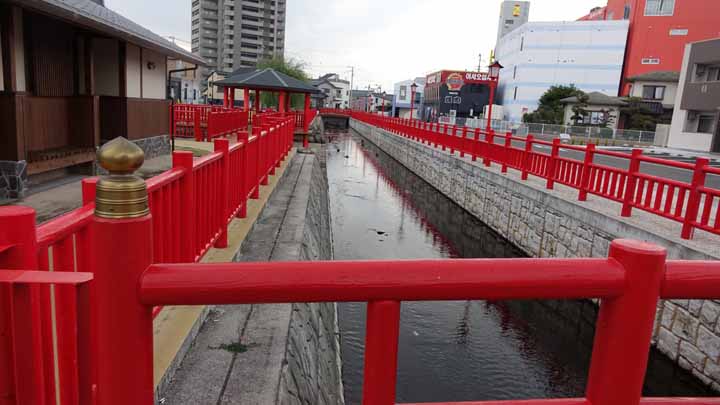 観光バスは中津駅前に午後3時丁度に到着したが、特急は出たあとで次の列車まであと30分もある。今度は徒歩で合元寺に往復した。宇都宮家の家来がすべて黒田家に成敗された寺で、以来壁が徐々に血に染まって赤壁寺の別名があるそうだ。今は壁を赤く塗ってたいへん目立っている。