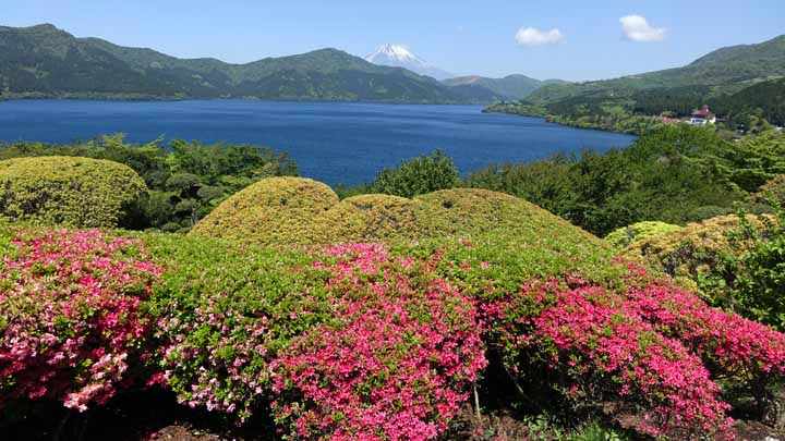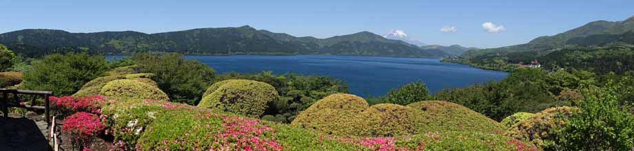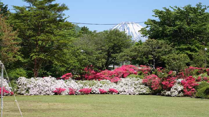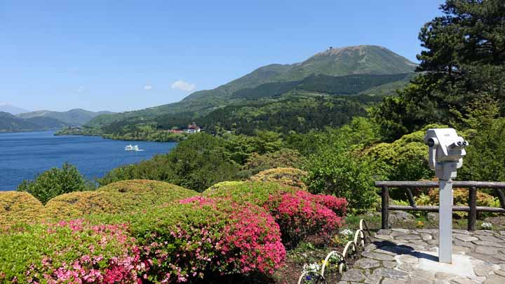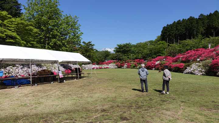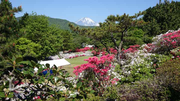 つつじ園も綺麗だが、見どころはやはりつつじの背景に遠くの富士山が見える景色。今日は芦ノ湖でも富士山が美しく見えたが最初に花月園で見た富士は昨日曇っていたので猶、今日の台風一過の日本晴れは嬉しかった。