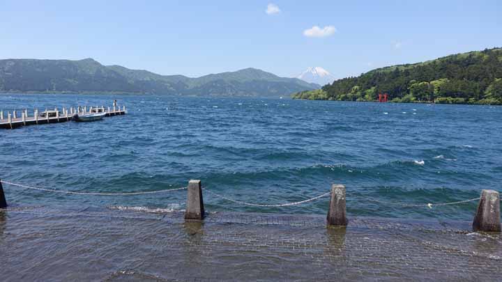 恩賜公園に到着後(午前10時、182Km延走行)園内展望台までゆっくりとスロープを登った。ここでも芦ノ湖の空に富士山が良く見えた。恩賜公園で素晴らしい景色を見た後、その足で芦ノ湖の南岸を湖岸に沿って1時間ほど散歩した。