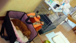 宿備え付けのケージも マイベッドもあったが |