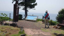 海岸絶景を眺めながら吊り橋や灯台方面に出ようとしたが階段が多くて、ドッグバギーに載せての歩行は困難になり、駐車場に引き返した。灯台付近まで車で移動しそこの駐車場から吊り橋や灯台、海岸、柱状節理のある岩壁などを写真を撮るなど、犬と一緒にゆっくり観てきた。オンブーという世界一大きな草を見てきた。木のような形をしているが草の仲間で木ではないので、年輪もないそうだ。