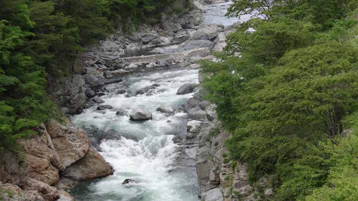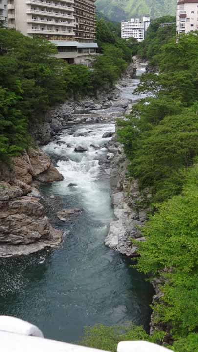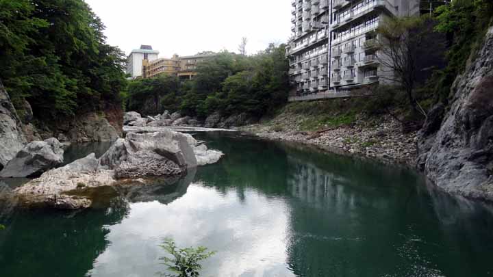 2時半に宿に到着してしまった。チェックインは午後3時なので、鬼怒川近辺をラミウリと散歩してきた。平日なのか、温泉街は閑散としている。鬼怒川はいわゆる清流に近く、水の色は深緑でたいへん綺麗だった。遠くの山並みも稜線が美しい。