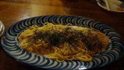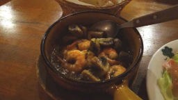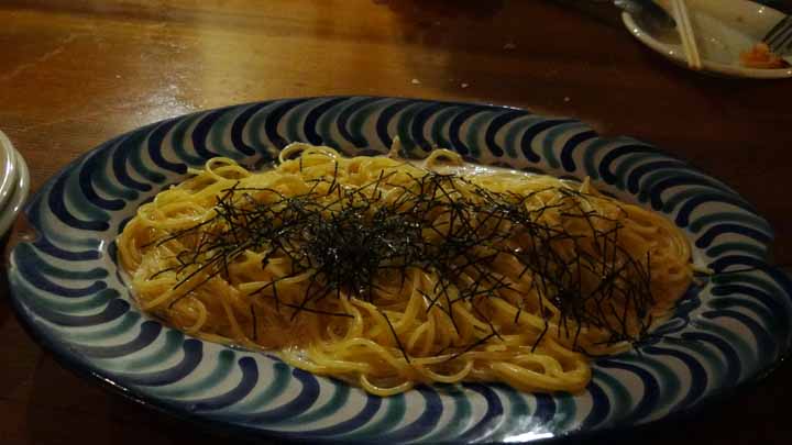 「グラナダ」で食べた料理は「生ハム仕立ての野菜サラダ」、「小エビとマッシュルームのピルピル」「ゴルゴンゾーラ風ペンネ」「明太子クリームスパゲティ」を二人で分けあっていただいた。美味かった。ピルピルはオリーブオイルとガーリックで煮込んだものだが深い味が山と海の素材に行きわたって、結構気に入った。