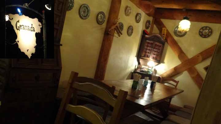 午後7時を過ぎてから宿から600メートルほど離れたスペイン料理のお店「グラナダ」に出かける。宿にお願いすれば和洋中の創作料理を用意してくれるが、食事はレストランの感じと食べログなどから自分たちで決めたい。