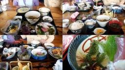 ナゴパイナップルパークでパイナップルと貝殻その他沖縄名産品を試食したり見学したりした。夕暮れが近づいてきたが、曇り空で岬やアカテイーダパンダ断崖からのサンセットビューも断念して、ホテルに向かう。帰りは高速道路ではなく一般道経由帰った。二泊目夕食は外食で、帰路に和食店『元祖海ぶどう』で海ぶどう丼などを食べた。海ぶどうは独特のプチプチ感があり、旨かった。ほかに「ラフテー・沖縄そば・ゴーヤーチャンプルー・ミミガー・ジーマミー豆腐」なども食べB級グルメを愉しんできた。