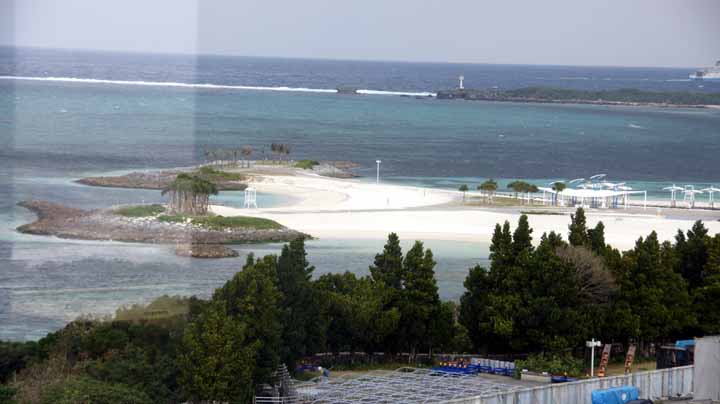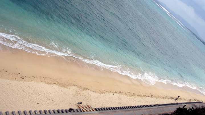 06:30頃に目覚めた。昨夜の泡盛が少々残っているか。7時過ぎに1階バイキング会場で和洋折衷の朝食をビーチを観ながら戴いた。朝から天気は良くないが、海の色だけは沖縄っぽくてよい。