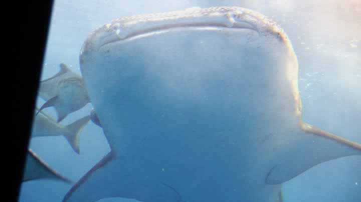 美ら海水族館では最初の「イノーの生き物たち」から出口近くの「お土産屋」まで愛子婆さんが納得するまでしっかりとみて廻った。「いのー」とは、沖縄の方言で、さんご礁に囲まれた浅い海のことで、愛子さんは興味深く、ひとでやなまこを触っていた。「じんべいざめ」や「まんた」の巨大さにはみんながびっくりした。近くで見るととてもデカイ。