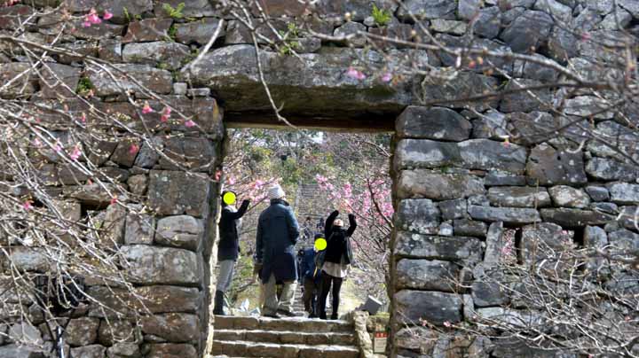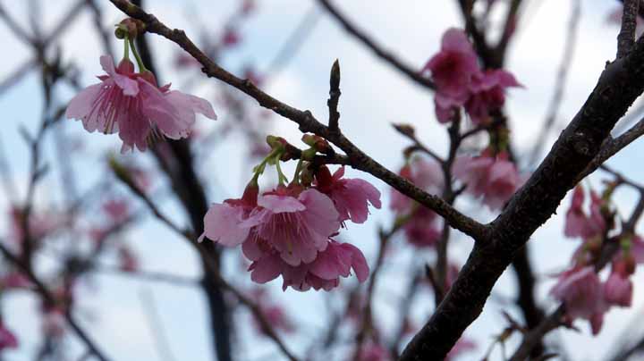 料理内容とお腹が充分満足感を得て世界遺産『今帰仁城跡』に向かう。此処に限らず、道沿いに桜の並木通りが多かったがこの城跡でもさくら祭りの開催中だったので1月中にも関わらず、ミニ花見ができた。