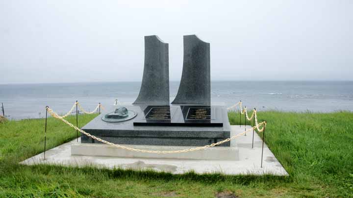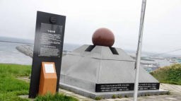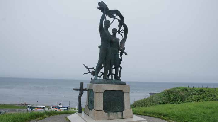 公園内の高台にあるモニュメント。樺太で亡くなった人々の慰霊と、樺太への望郷の念を篭めて昭和38年に製作された