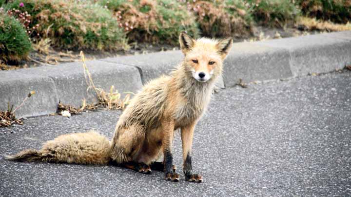 宗谷岬の周辺では日本最北端の○○という表示がやたら多い。「日本最北端の給油場」というのにあまり意味は無いと思うが・・・。宗谷岬へのバスの中からキタキツネを発見。遠くからだったが、何とか撮れた。岬の公園でも人なつっこそうなキタキツネを発見し、これはそこそこ近くで撮影できた。