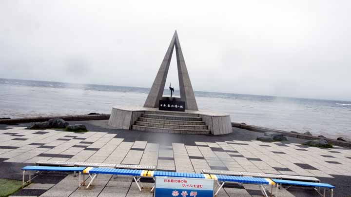 宗谷海峡に突き出した岬の先端は北緯45度31分22秒で日本最北端の地。海を隔ててサハリンまでは、43Kmの距離。岬には、日本最北端の地碑、稚内から樺太に渡った間宮林蔵の像、丘の上に旧海軍望桜などが立っている。