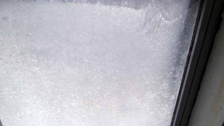 寒!! 二枚戸の内側にも氷 |